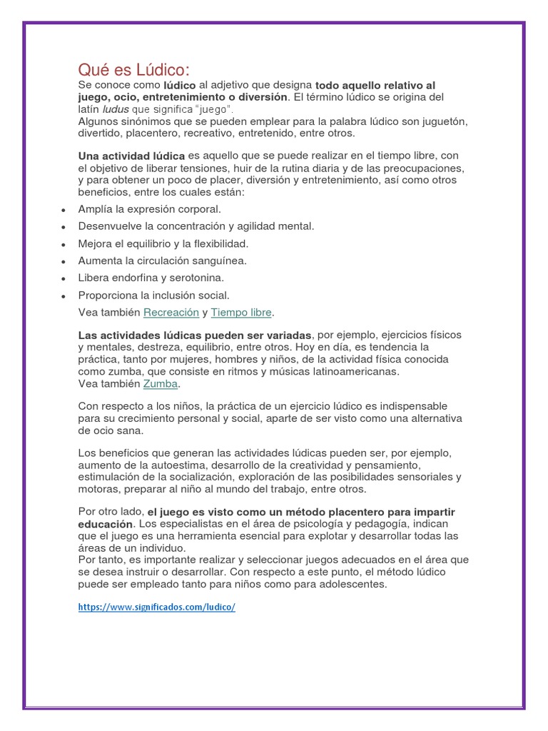 Que es juego ludico ejemplos. Objetivo general es crear un espacio para el desarrollo del niño a través del juego y la participación en las actividades lúdico formativas, surgen para el encuentro grupal e intergeneracional y el juego de los. Que es juego ludico ejemplos : Esta clase de actividades no tiene un propósito general más allá de participar en la estructura del juego. Es bueno que trabajes mucho.